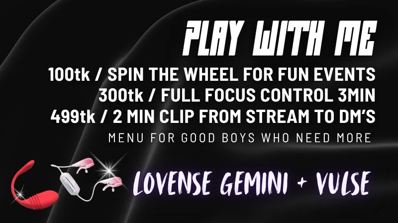 Erotikus tánc, Jelmez, Mocskos beszéd, Magassarkú, Fenekelés, Sztriptíz, Félmeztelen, Orgazmus, Zuhany, Iroda, Főzés, Ahegao, Mellbimbó izgatók, Villantás, Dildó vagy vibrátor, Mély torok, Ujjazás, Anális játékok, Szopás, Szájpecek, Maszturbálás, Szerepjáték, Szexjátékok